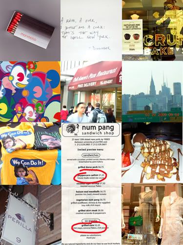 I must do a little plug here in support of up and coming talent: I just had the best sandwich ever in Num Pang a few weeks ago. I had the peppercorn catfish, the coconut corn and the blood orange lemonade to finish. Buy it, sit outside in union square park and just treat your soul well.